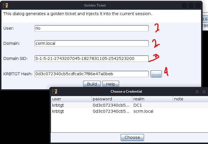 - Last select the KRBTGT hash that we got from hashdump. You can select using the … button