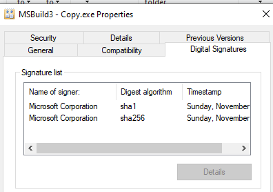 Below is the screen capture between the two MS-Build that has been embeded with payload and original one. The above is the SigCheck result for the compromissed PE