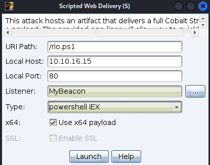 Lets generate cobaltstrike beacon payload. I would like to use one of my favorite is Scripted Web Delivery