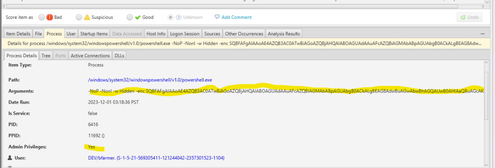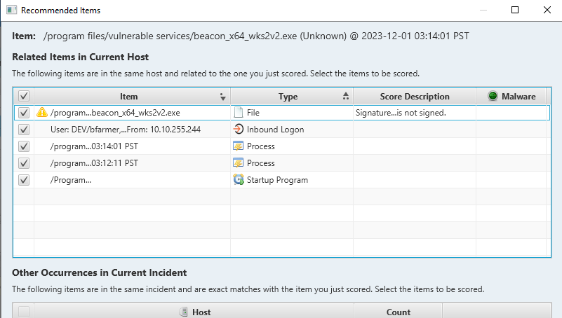 CyberTriage doesn’t immediately identify these elements as malicious. However, you can manually designate them as bad with a simple right-click and selecting “Score Item As –> Bad.” This hands-on approach allows for a more personalized assessment of potential threats