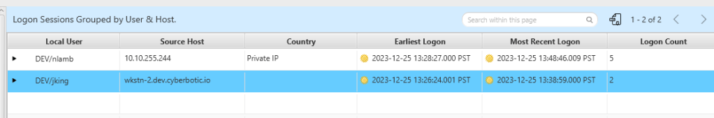 Two users have successfully logged in via network logons. However, in this instance, it is unclear which one was utilized by the adversaries to move laterally. The two users in question are “nlamb” and “jking.”