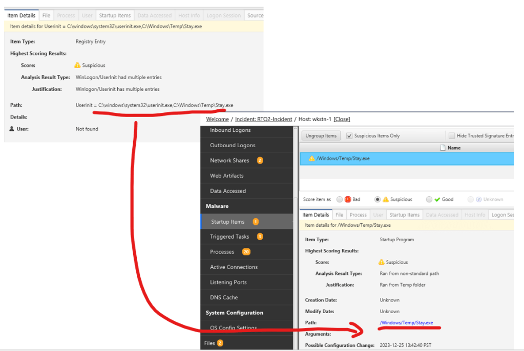 The backdoor persistence is a way to maintain the C2 connection. To analyze this, You can go to Malware Section and Startup Items