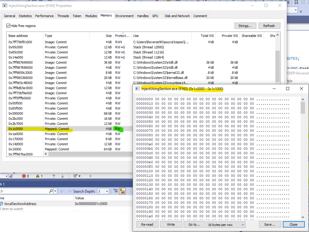 PVOID localSectionAddress = NULL, remoteSectionAddress = NULL;
