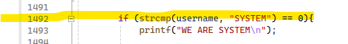 You are required to access the project in Visual Studio and make changes to the relevant code. Navigate to line 1492, where the condition checking for SYSTEM or normal privilege is located.
