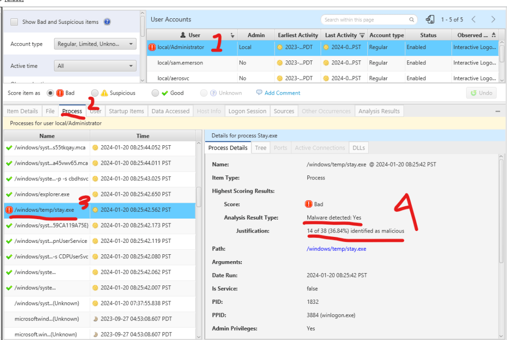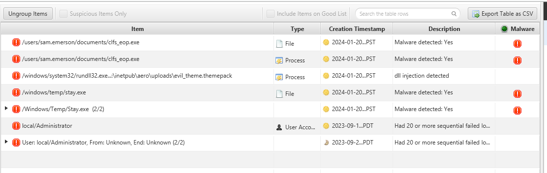 As we have identified that the user sam.emerson has been compromised, it is advisable to flag this account as suspicious. This action will aid in future analyses as CyberTriage can correlate the events triggered by sam.emerson.