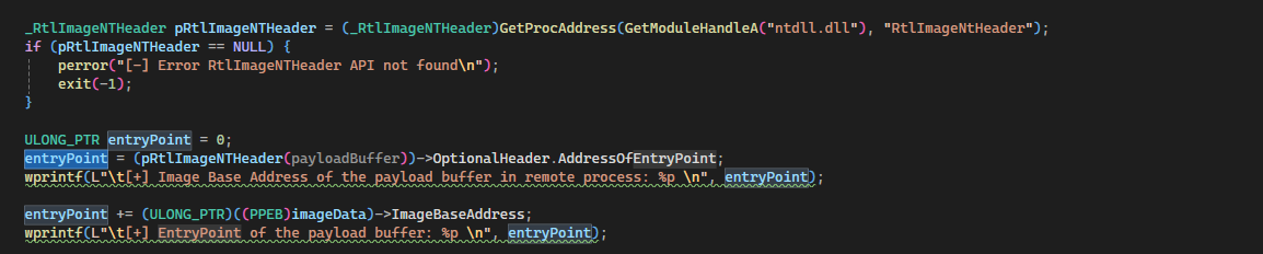 Our payload is primed in the memory (hSection); however, in order to execute it, we must establish a suitable process. This process will serve as the environment for executing the code, which comprises our payload.