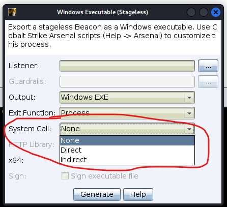 I have been utilizing Cobalt Strike for several years during red team exercises. One notable feature is the generation of the Cobalt payload, which requires the selection of a specific option from a dropdown menu for Direct or Indirect Syscal.