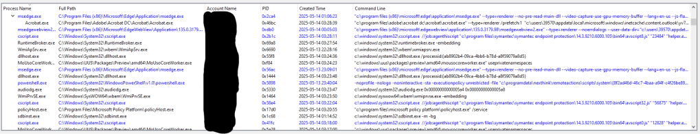 - Suspicious Command Lines: Processes with commands that might raise concerns (like “powershell” or “cmd”).
