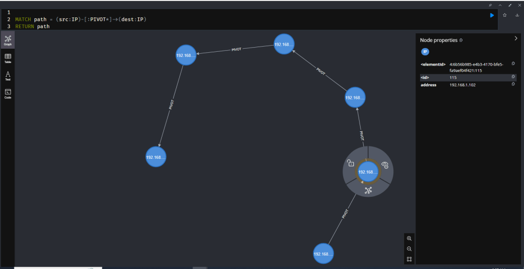 The detailed graph with all the processes and hashes is awesome for digging in, but sometimes you just want the big picture. This is where the PIVOT relationship comes in. It’s a summary relationship that answers one simple question: “Which hosts did the attacker jump between, and in what order?”
