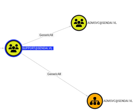 Once we have a low-privileged user (e.g., J.Doe), we map the ACL (Access Control List) graph. We discover a common dangerous pattern:
